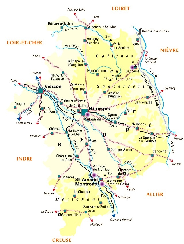 Il formait autrefois avec le département de l'Indre la province du Berry. Il fait aujourd'hui partie de la Région Centre et est limitrophe des départements de l'Indre, de Loir-et-Cher, du Loiret, de la Nièvre, de l'Allier et de la Creuse.