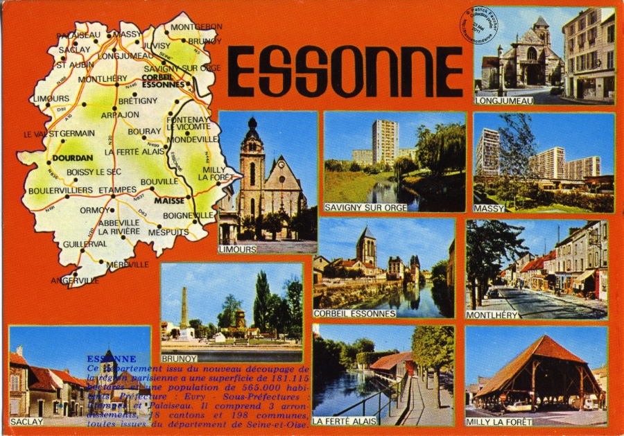 Le département de l’Essonne est une portion de l’ancienne Seine-et-Oise, officiellement créé le 1er janvier 1968 par démembrement, comme ses départements limitrophes que sont les Yvelines, les Hauts-de-Seine, le Val-de-Marne, la Seine-et-Marne qui est le plus vaste département de la région Île-de-France, le Loiret et l’Eure-et-Loir.
